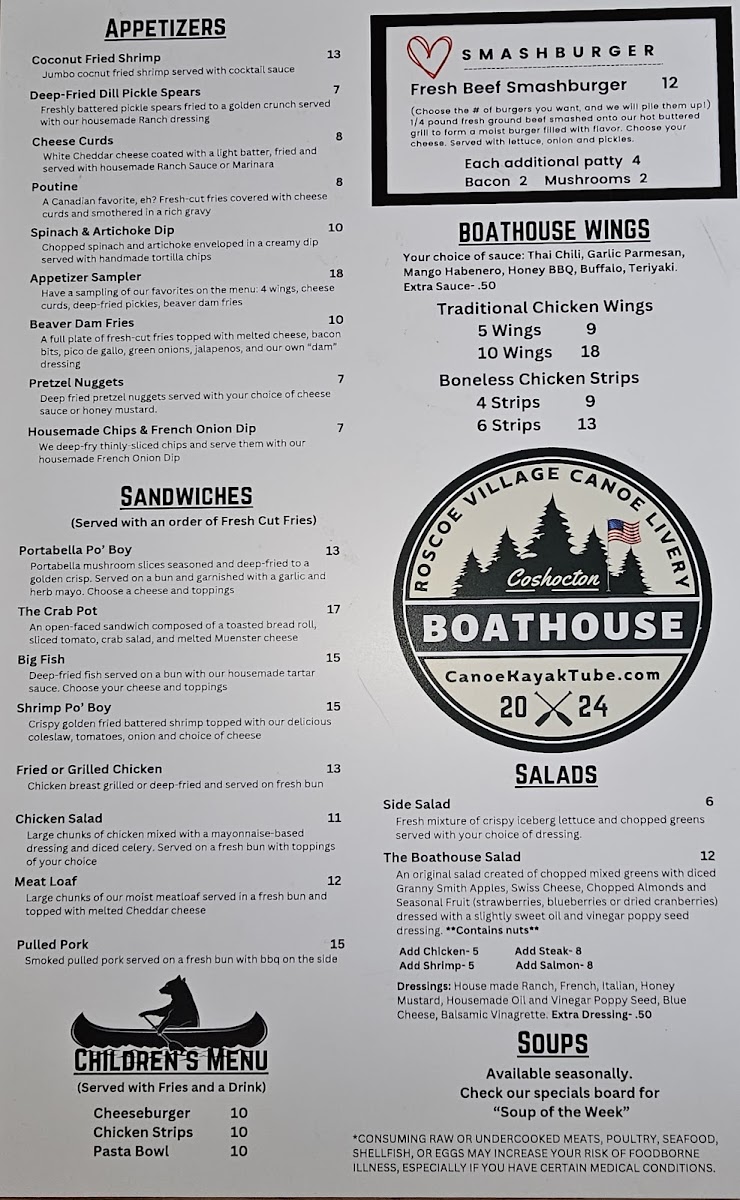 The Boathouse Tavern offers a menu that reflects its relaxed, riverfront atmosphere—a straightforward selection of American favorites with a focus on familiar flavors and comfortable portions. Guests can expect a variety of satisfying dishes that suit casual lunches, laid-back dinners, or an easy-going evening enjoying the view from the outdoor deck.